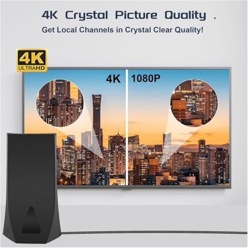 Unparalleled Signal Reception: With an impressive range of 650+ miles, our digital antenna ensures crystal-clear reception of your favorite local channels such as ABC, CBS, NBC, FOX, and many more. Whether you're into news, sitcoms, kids' shows, or sports programs, our antenna supports 720p, 1080i, 1080p, 2K, and even 4K HDR, bringing you an immersive visual experience.