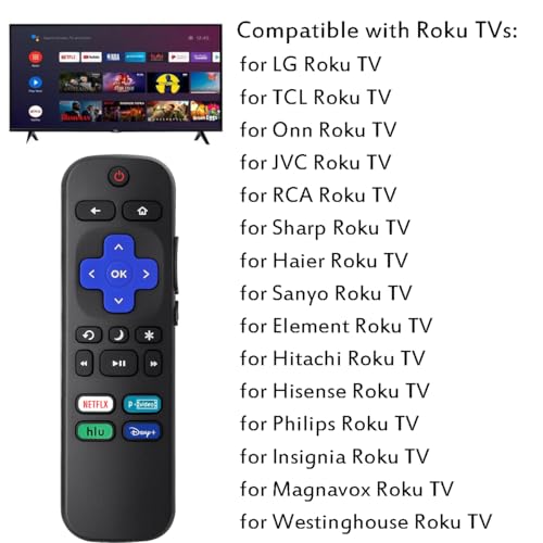 Compatible with --- The remote control is compatible for R0KU All Series TVs, fit for TCL R0KU TV, for Hisense R0KU TV, for Onn R0KU TV, for Sanyo R0KU TV, for Philips R0KU TV, for Insignia R0KU TV, for JVC R0KU TV, for RCA R0KU TV, for Element R0KU TV, for Magnavox R0KU TV, for Westinghouse R0KU TV, for Hitachi R0KU TV, for LG R0KU TV, for HaierRoku TV, for Sharp R0KU TVs.