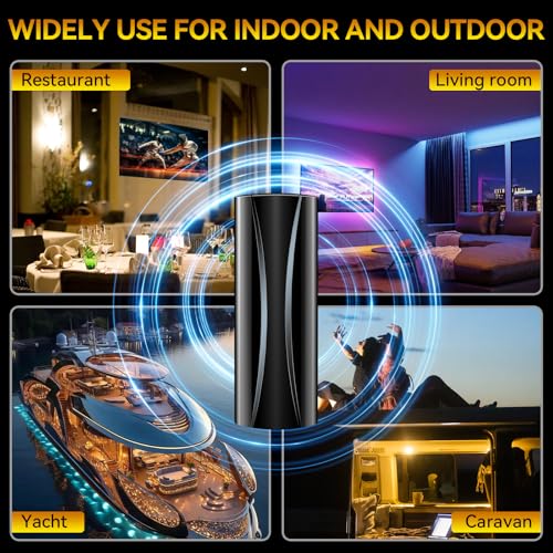 PREMIUM & COMPACT DESIGN FOR INDOOR/OUTDOOR: Our tv antenna features in premium and compact design, including 38ft high-performance long coaxial cable, you can put it behind your TV, nail on the wall, stick on the window or tie to the balcony and will not take up a lot of space. Can work both indoor or outdoor and you don't need to worry about the signal reception wherever you are, which ensures strongest signal strength and reception quality even in bad weather! The best choice for living room, bedroom, basement, RV, and yacht etc.