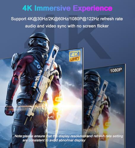 ?Audio & Video Sync Transmission??This displayport to hdmi cable delivers high-definition audio and video from your computer source to HDMI screen, supporting extended or mirrored modes. Handles resolutions up to 4K@30Hz, 2K@60Hz, and 1080P@120Hz, with flawless audio for 7.1, 5.1, or 2 channels