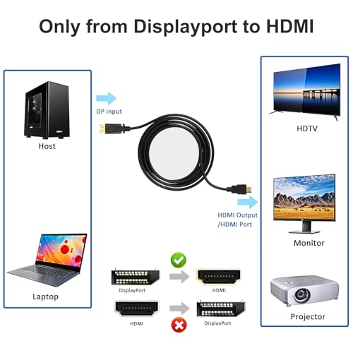 ?4K UHD Resolution?The dport to HDMI cable connects a DisplayPort (DP, DP++, DisplayPort++) equipped computer directly to an HDTV, gaming monitor or projector with HDMI input. Supports 4K@30Hz, 2k@60Hz, 1080P@120Hz, providing realistic and smooth frames for your large display. Please note: This is a one-way DP to HDMI cable. ?Does not support HDMI to DP.