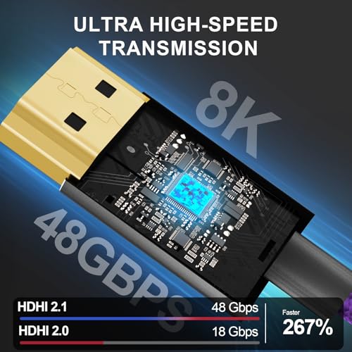 ?High Speed?Alvin’s Cables HDMI 8K cable supports up to 48 Gbps bandwidth, with 8K@60Hz, 4K@120Hz capabilities and with super resolution of 8K 7680x4320 and 3840x2160@120Hz. Protects against signal interference, minimizes signal loss effectively, resists external electromagnetic interference on video & audio, no frame drop or flash screen.