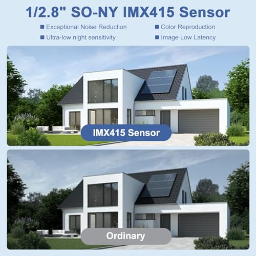 1/2.8" SO-NY IMX415 CMOS Sensor: It features max resolution 3840x2160 ultra HD video quality, 4k resolution for exceptional noise, ultra-low night sensitivity, low latency capturing ultra high definition live images up to 20fps, and is capable of restoring the true environmental colors.