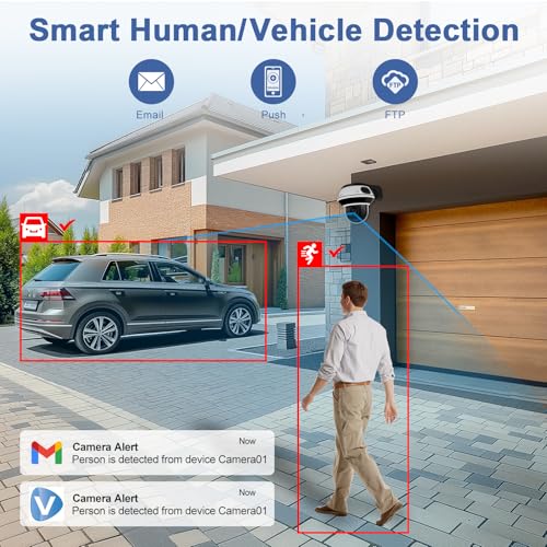 Human/Vehicle/Motion Detection and Alarm Notification: This poe ptz camera outdoor is equipped with human/vehicle motion/detection technology. If the camera is set to instant email alerts, it will push notifications to your device when motion is detected.