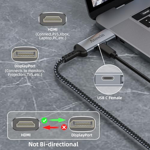 ?Plug and Play?Answin HDMI to Display Port cable works only from HDMI equipped desktops/laptops or other deivces(For example, Xbox,PS5 etc) to an HDTV/monitor/projector with DisplayPort (DP) output. The cable convert the HDMI 2.0b signal to DisplayPort 1.4 signal, please pay attention, ?it's uni-directional, from HDMI source to DisplayPort monitor or display devices.