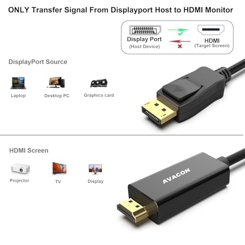 The 6 Feet Convenient Displayport male to HDMI male cable directly connects a DisplayPort (DP, DP++, DisplayPort++) equipped computer to an HDTV, monitor, or projector with HDMI input.It is NOT a bi-directional converter and cannot transmit signals from HDMI Source to DisplayPort Monitor.