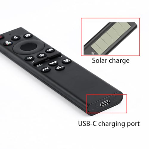 ? No More Batteries Needed?BN59-01385A for Samsung solar remote comes with a solar panel and built-in battery, supporting USB-C charging and voice control—no more batteries needed, charge via Type-C cable or sunlight.