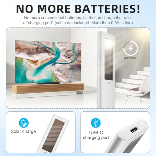 Remote control uses solar charging technology, combined with a built-in rechargeable battery, and supports USB Type-C interface charging, which effectively solves the problem of frequent battery replacement in traditional remote controls and greatly improves the convenience of use and environmental protection. When charging normally, the indicator light on the remote control will light up to show the charging status, ensuring that users can intuitively understand the power information