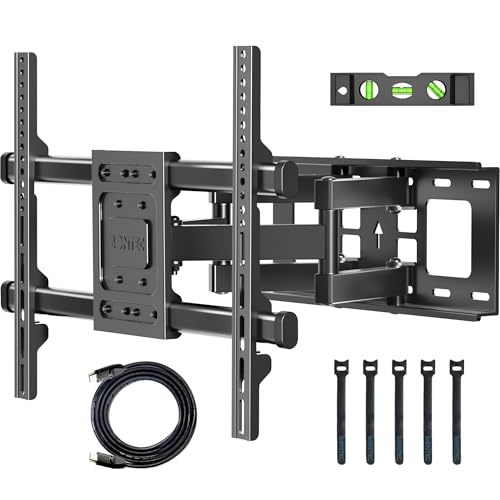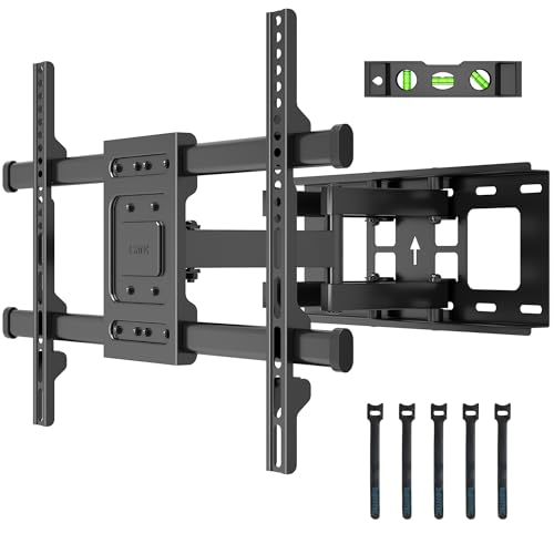 Full Motion Adjustable & Strong Dual Arms - The arms of our TV wall mount can swivel +/- 45° to the left and right (max swivel angle depends on TV size.), easily customizing your viewing experience. The arms of this large TV wall mount are made of high quality black coated cold rolled steel, making it extremely durable and anti-rust. It comes with two steel arms which can hold TVs weighting up to 132LBS. Safety locks ensure your TV is held securely.