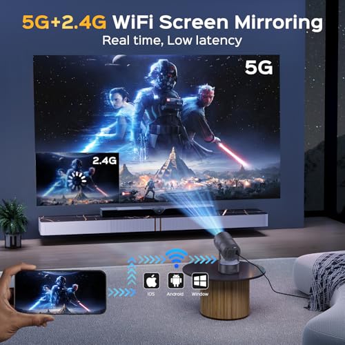 [Wi-Fi 6 & Bluetooth 5.2 | Seamless Connectivity] Aubor Mentech Portable Projector Uses the latest 5G technology, higher transmission rate, and lower latency, a few seconds will be wirelessly synchronized to get a big screen. No additional adapter required