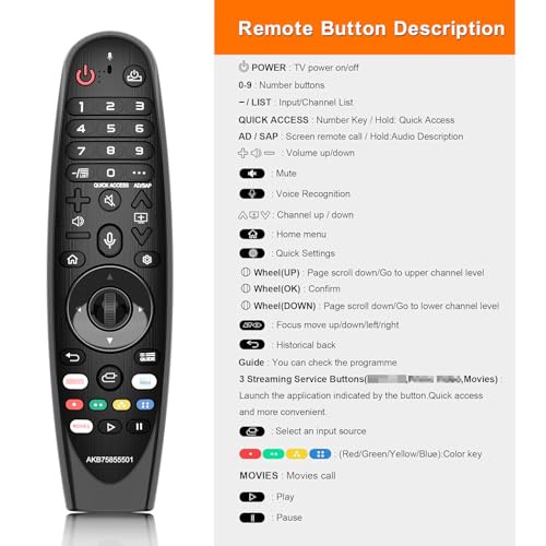 ?Compatibility?This Replacement voice remote compatible with LG TVs 2018-2024 Model Year,( intended for 2018, 2019, 2020, 2021, 2022, 2023 and 2024 model year TVs). If your TV does Not support pointer and voice function or is a model prior to 2018, the pointer and voice function of this remote may Not work.