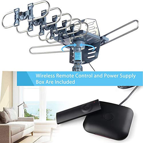 Wireless remote controller -- Built-in 360 degree Strong Motor rotor | Built-in Super High Gain and Low Noise Amplifier | includes 40FT outdoor TV antenna RG6 Coaxial cable. Easy for you to place it to get the best reception in your house.