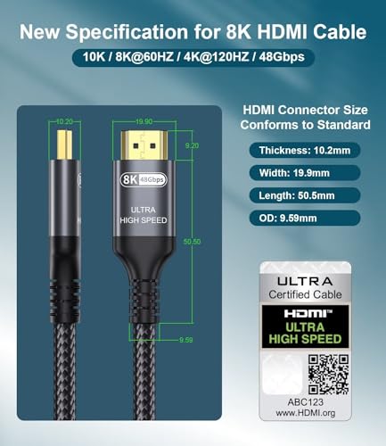Ultra High Speed HDMI Cable: Support 10K 60Hz, 8K 60Hz, 5K 165Hz 144Hz 120Hz, 4K 240Hz 200Hz 180Hz 165Hz 144Hz 120Hz, 2K, 1440P, 1080P, 720P, 480P