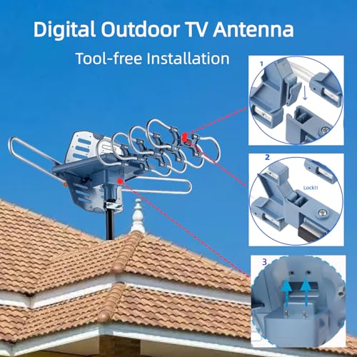 4.TOOL-FREE INSTALLATION: Snap on elements No tools required.Freely mount this digital amplified antenna with the pole on roof, attic, chimney, eave, mast or outside the house with or without line of sight.Comes with an easy-to-follow user manual so you can install the antenna with ease