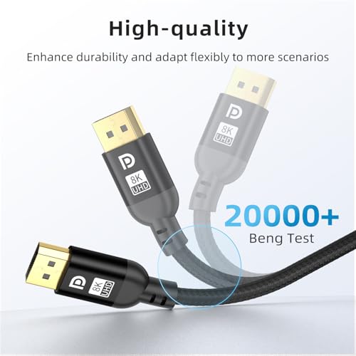 Wide Compatibility with 6.6ft Convenience:Fully supports DP 1.2/1.3/1.4 protocols, working seamlessly with NVIDIA/AMD graphics cards, MacBooks, 4K monitors, and gaming rigs. The 6.6ft length fits most daily use scenarios—no need to struggle with too-short cables or excess clutter.