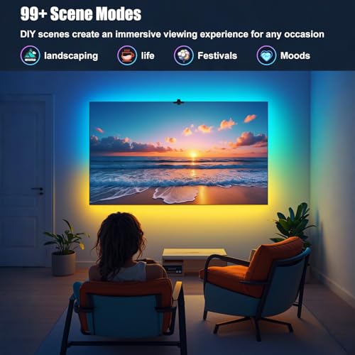 Quick Installation: Designed for 75-85 inch TVs. Simply mount the light strip securely on all four sides of the back of the TV, fix the camera in the center of the top of the TV, and it can be easily set up as a backlight LED light
