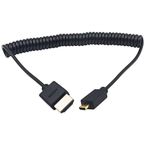 [Ultra Thin coiled micro HDMI to HDMI cable] Micro HDMI male to HDMI male coiled cable, normally stretches to 80 cm. Short HDMI to micro HDMI 2.0 cable can smoothly extend from 1 feet to 6 feet. The flexible/extendable coil design can meet your different distance requirements. The micro HDMI coiled spiral cable can be as long as 6 FT at most.