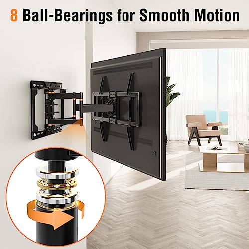 Smooth Motion - The TV mount with 8 ball bearings design and enhanced arm hinge provides smoother motion to effortlessly extend up to16.3" and swivel +/-45°. Feel free to move your ultra light and slim flat curved TVs without harm