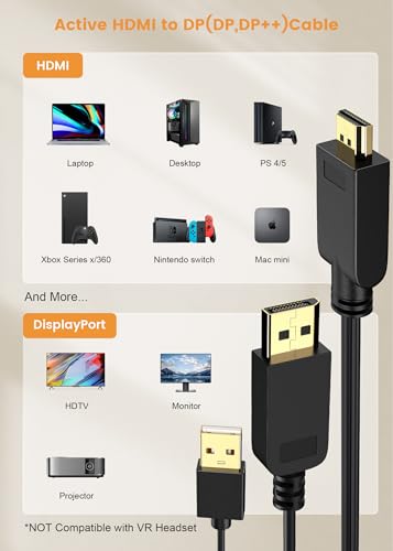 ?Wide Compatibility?Active HDMI to DisplayPort converter with USB power, ensure the universal compatibility. Especially for the low voltage devices, USB power provide 5v power, ensure the signal transmission stability. Before connect the adapter, please connect the USB with AC adapter or USB port on source devices