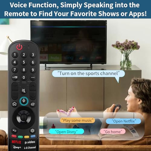 ?POWERFUL KEY FEATURE? Our MR21GA replacement remote for Ig tv with point, click, scroll functions, you can select the functions easily by moving and clicking the cursor. It also comes with voice control and 6 hot-keys,Netflix, Prime Video, Disney+, LG Channels, Alexa, Google Assistant, you’ll easily access to your favorite content in a click.