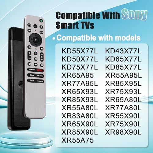 ?Applicable for Sony TV Types?Voice remote compatible with Sony Bravia Google Smart TVs, it covers models such as BRAVIA 9, BRAVIA 8, BRAVIA 7, BRAVIA 3, X90L, X90CL, X93L, X93CL, X95L, A75L, A80L, A80CL, A95L etc