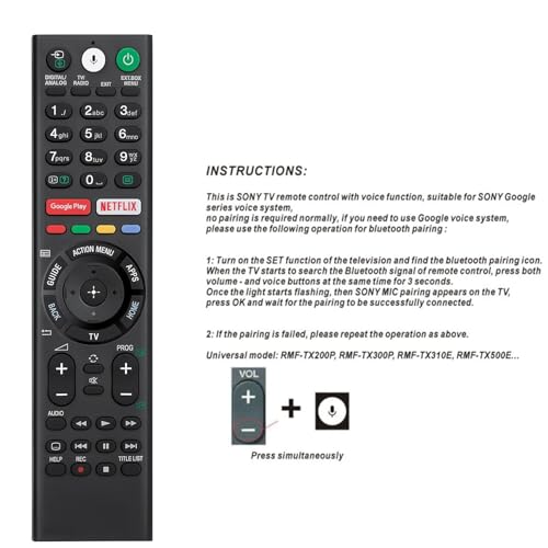 Remote Compatibility : Universal for Sony Voice Replacement Remote Control Models: RMF-TX200U,RMF-TX201U,RMF-TX220U,RMF-TX310U,RMF-TX500U,RMF-TX520U,RMF-TX600U,RMF-TX611U,RMF-TX700C