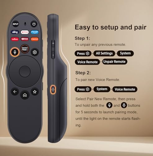 Easy to Setup and Pair: This voice-replacement remote for vizio smart TV has the convenience of voice control, uses voice to find your favorite content, and is simple to pair and use. Voice control does not work with all vizio TVs but the remote functions with all vizio smart TVs. ( TIP: If you plan to use microphone search function, you have to unpair the original remote and add new remote. Press the MIC and MUTE buttons to begin pairing mode.)