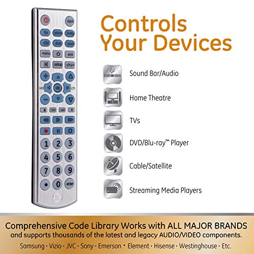 Best remote code library - Works with all major brands and supports thousands of the latest audio/video equipment that use infrared technology; does not work with Roku streaming sticks, Fire TV sticks or other radio frequency devices