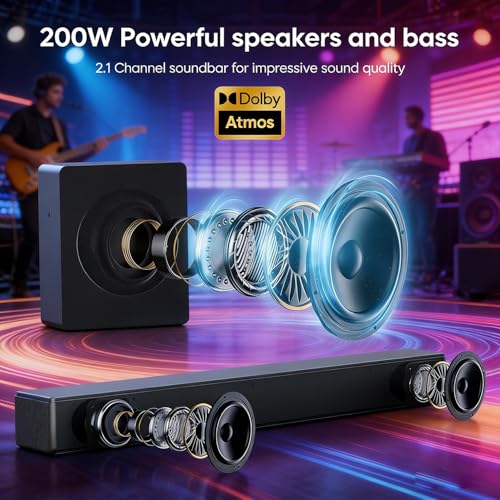 ?2.2ch Sound Bars for TV? It has a configuration of 2 inches x 2 tweeters + 2.25 inches x 2 woofers. This sound system combines a speaker with one chassis on each side and dual subwoofer dedicated to deep bass. Achieved a sound channel exceeding 2.1ch. (Suit for Amazon Fire, Sumsung, Hisense, Insignia-smart tvs.)