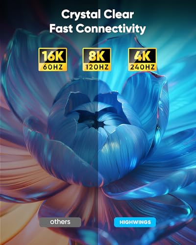 [Future-Proof 16K Clarity & Excellent Performance]: Experience the pinnacle of home entertainment with our HDMI 2.2 cable.While current 8K content is stunning, this cable is engineered for the future, fully supporting a potential 16K resolution. Delivering a massive 96Gbps bandwidth, it ensures flawless playback for 16K@60Hz, 8K@120Hz, and even 4K@240Hz for ultra-smooth gaming. Rest assured, you're investing in a cable that won't become obsolete