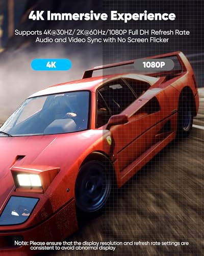 4K UHD and Audio Sync: Supports up to 4K@30Hz resolution with backward compatibility for 1440P/2K@60Hz and 1080P Full HD. Ensures synchronized high-definition audio and video for an immersive streaming or gaming experience