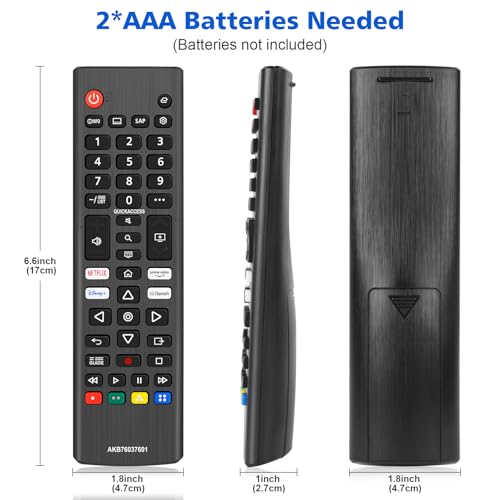 Free of Setup Requirements: This lg tv remote control replacement does not require complicated installation, and you can use it directly after installing 2*AAA batteries (batteries not included). The cover on the back of the remote control has a triangular arrow. Push the cover in the direction of that arrow, then open the cover and install the battery to use it.