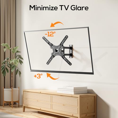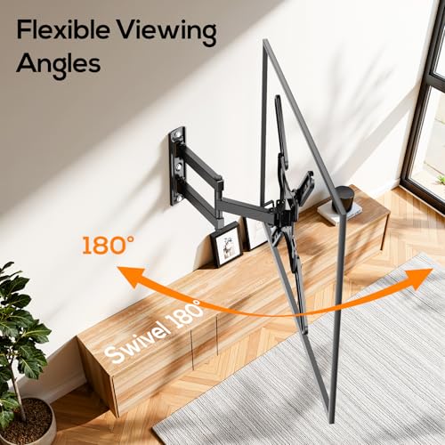 Optimal Viewing Experience: Enjoy a perfect viewing angle with this full motion TV wall mount, offering +3°/-12° tilt to reduce glare and 180° swivel to direct the screen.