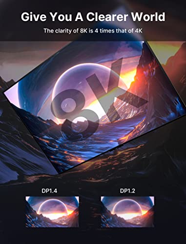 ?8K Displayport Cable?Displayport 1.4 cable supports high resolutions, such as 8K(7680x4320)@60Hz, 5K(5120x2880)@60Hz, 4K@144Hz, 2K@240Hz, 1080P@240Hz. It also support Dynamic HDR and HDCP 2.2. High resolution make the picture is more clear. Dynamic HDR makes the color level of the picture richer and more realistic. Displayport 1.4 cable can bring you a visual enjoyment.