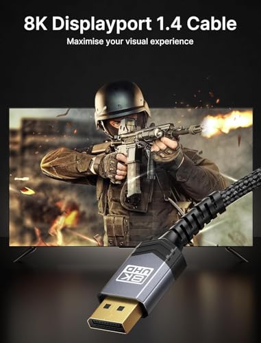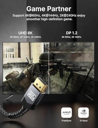 ?240Hz Displayport Cable?240Hz refresh rate can bring you excellent gaming experience. No motion blur, screen tearing or flickering. You can clear perceive the movement of enemy. DP 1.4 cable supports 32.4 Gbps bandwidth. When playing a movie, it can transfer 2GB data per second an average, stronger than DP 1.2 cable.