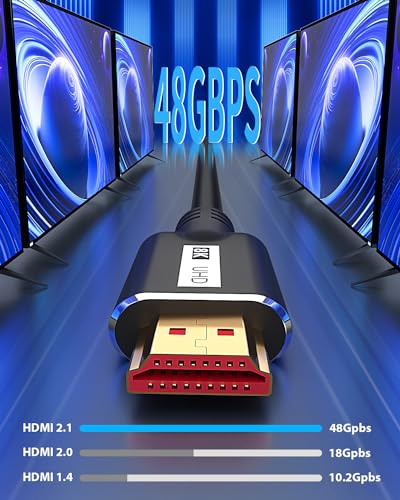 ? Enhance Viewing Experience ? The 8K HDMI cable enhances your viewing experience through advanced technologies such as SBTM, Variable Refresh Rate (VRR), Quick Media Switching (QMS), and Automatic Low Latency Mode (ALLM). Say goodbye to screen tearing and lagging.