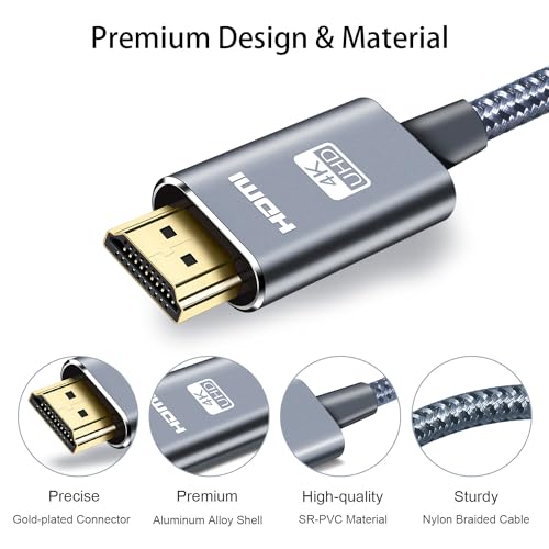 ? Braided HDMI Cable ? Ultra-durable nylon-braided with a bend lifespan of 10000+, Pure copper core manufacturing; Built with gold-plated connectors and top imported chips to ensure high-speed and flawless signal transmission