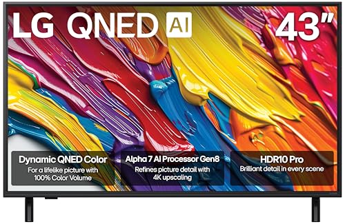LG 43-Inch Class QNED AI 4K QNED82A Series Smart TV w/AI Sound, HDR10, 4K Super Upscaling, Filmmaker Mode, Wow Orchestra, Alexa Built-in (43QNED82AUA, 2025)