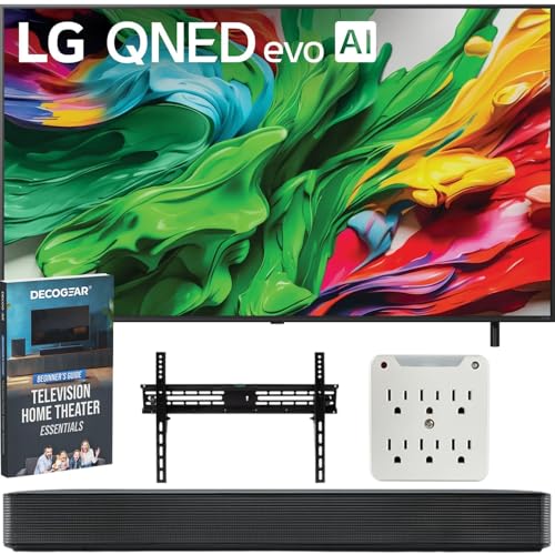 BUNDLE INCLUDES: LG SKM1 2.0 Channel Compact Bluetooth Soundbar Wireless TV Speaker with Remote | Deco Mount 37" - 70" TV Wall Mount Bracket Bundle w/ 2 HDMI Cables, Spray Bottle and Wipe | Stanley SurgePro 6 NT 750 Joule 6-Outlet Surge Adapter with Night Light - 33208 | Deco Gear Complete Home Theater Beginner's Guidebook