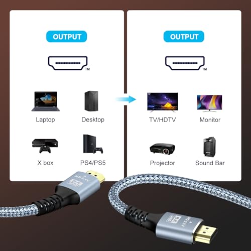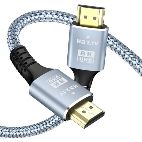 ??Reinforced classic high-quality materials? This 8K HDMI Cord uses most popular classic style, with a new smart chip, making it reach an unprecedented height. The strength of the aluminum alloy shell and the tail's anti-bending design has been upgraded to make it more durable. The plug part is still made of 24K gold-plated material, which accurately transmits signals. The military grade tensile nylon material also greatly extends its life.