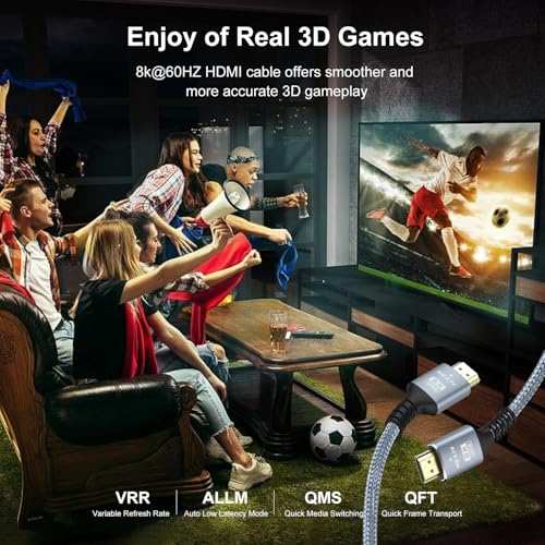 ??For Game Enthusiasts? This 8K Ultra High Speed HDMI Cable is not limited to 4K@60HZ, it can break through 4K and achieve 8K ultra-high image quality. It can also achieve a super smooth picture of 4K@120HZ. Its latest game mode supports variable refresh rate, maximizes the value of the graphics card and CPU, and is more accurate in the processing of rendered images. When the scene is switched, the refresh rate will change accordingly to obtain a smoother and more detailed picture.
