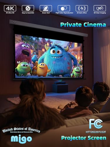 [Lifetime Support & FCC Certification] MIGO electric projector screen offers lifetime email support. FCC certified for electromagnetic safety (ID: HTT202207222F), ensuring reliable quality and safe use of the automatic projector screen for home theater