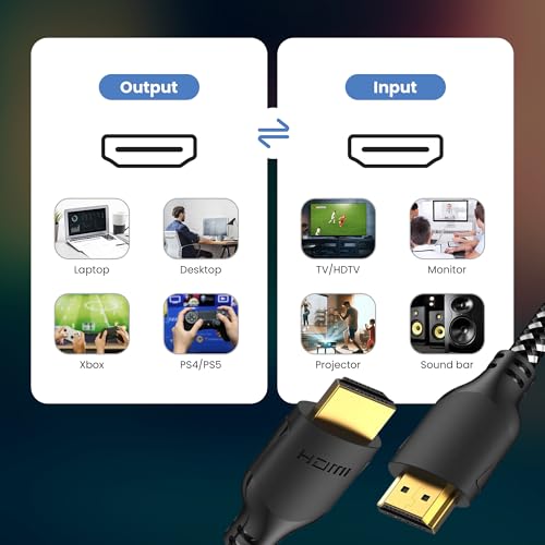 Universal HDMI Cable: Works with all of your HDMI devices. Compatible with Blu-ray players, Fire TV, Apple TV, PS5, PS4, XBox One, Nintendo Switch, computer, laptop, monitor, projector and more. An essential HDMI cable for all of your home & office devices