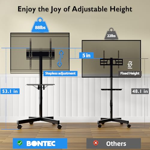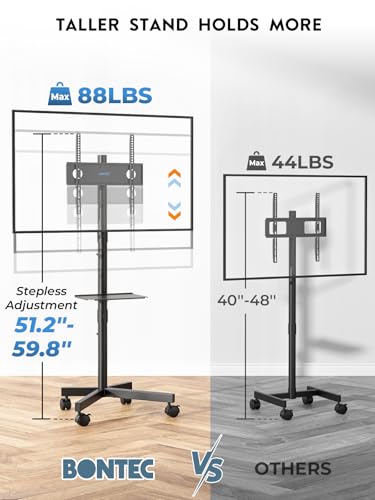 STURDY & DURABLE CONSTRUCTION – Built with high-quality steel, this rolling TV stand can support up to 88 lbs, providing a solid, secure base for your TV. Designed to last, it includes additional safety screws for extra stability.