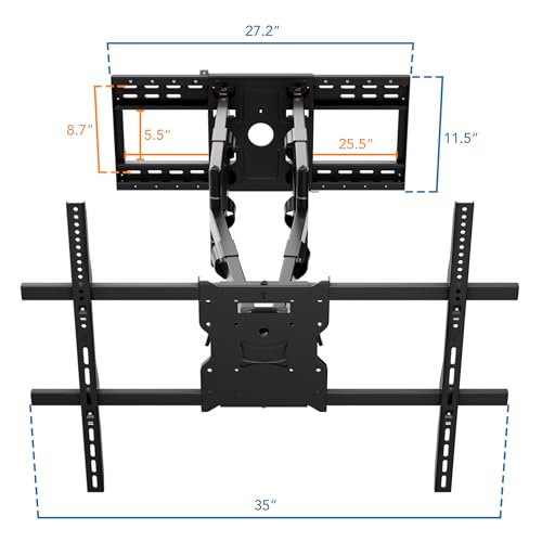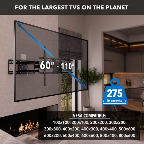 TANK TOUGH: HOLDS 275lbs and Up to 110in TVs - Our long articulating tv wall mount is a beast! Designed to provide stability for the Ultimate Cinema Experience. This full swivel tv wall mount was quality tested to hold 1100 lbs at once - so you can rest assured it will easily hold 275lbs. All high quality 4k, LCD, LED, QLED, and OLED TVs deserve our Mount-It! long arm tv wall mount.