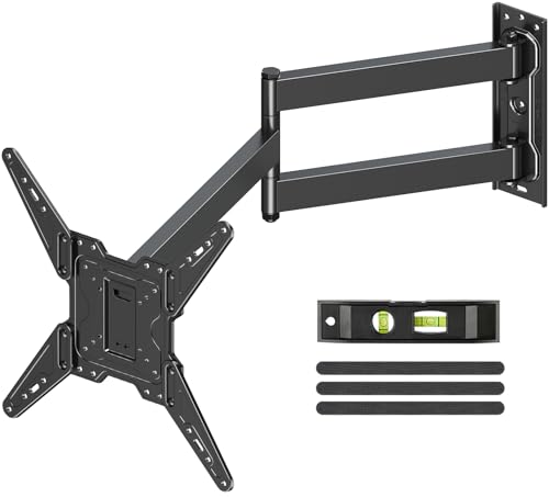 Versatile Full Motion Mount: No need to move the whole mount to cover all angles in your room. With +/-90° of flat screen swivel, allowing the TV to cover any angle. Tilt+5 °/-10 ° to adjust the angle to avoid glare according to the situation. +/-3° post-install leveling to precisely align the TV even after installation