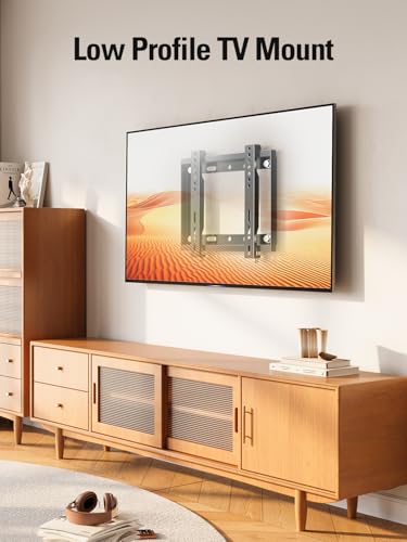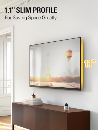 [ Low Profile TV Wall Mount ] Super slim TV wall mount designed for sleek look. Narrow gap 1.1” between wall and this Flush TV mount. Basic TV mount makes your stylish displays look like art painting, easy to blend in with any decor.