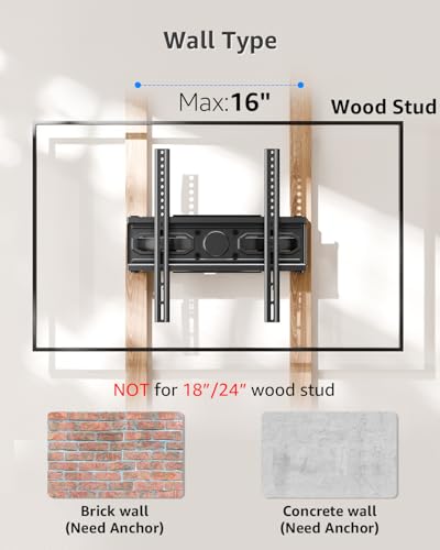 SOLID CONSTRUCTION - Heavy duty TV wall mount with dual 6 support design is constructed of high-quality cold-formed steel for ultimate safety and reliability. Each TV bracket has been strength tested to ensure security for your TV and your family.