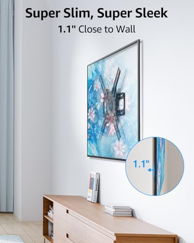 Ultra-Slim TV Wall Mount - Designed to sit just 1.1” from the wall, give your TV that floating-on-the-wall look with this ultra-slim mount. Enhancing its art-like appearance while maintaining modern sleek. TV Mount is not compatible with The Samsung 32” Frame TV because of lacking standard VESA holes.