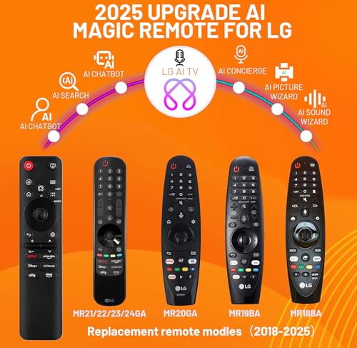 Replacement Remote Modles: mr25ga replacement for lg magic remote control for smart tv 2019-2025. for LG MR20GA/21GA /22GA /23GA /24GA /25GA, Replace akb76046603 akb76046605 akb75375604 akb75855501. If you are unsure of the model you need or are unsure the compatibility, Please let us help you confirm compatibility before purchasing.